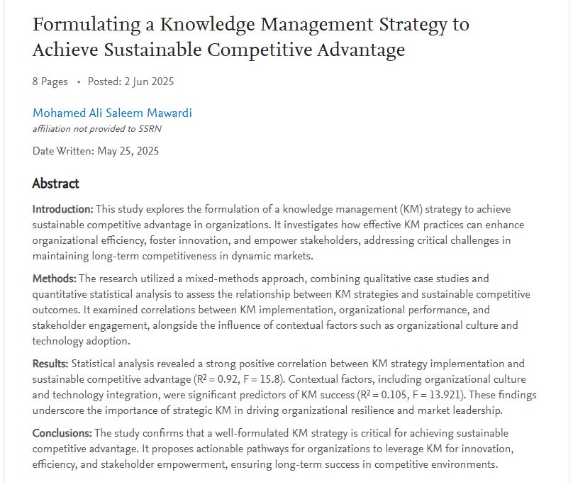 Fuente: Mawardi, M. A. S. (2025). Formulating a Knowledge Management Strategy to Achieve Sustainable Competitive Advantage. SSRM (Social Science Research Network).